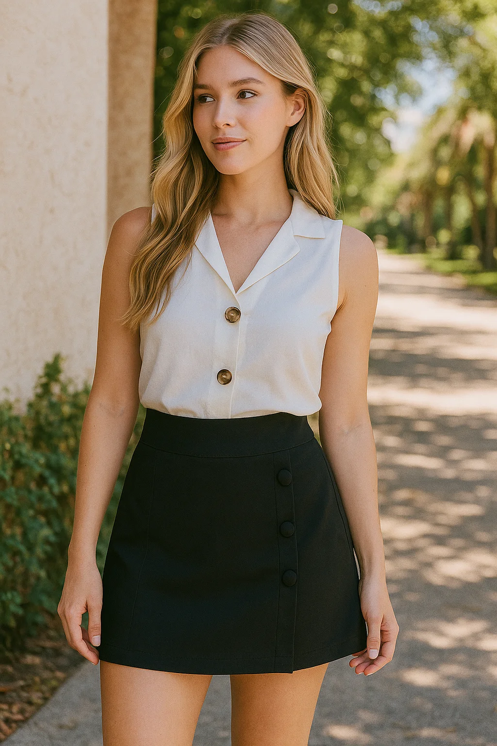 Garanta já o seu Short Saia Alfaiataria Preto e descubra como uma peça simples pode transformar seu guarda-roupa inteiro.
