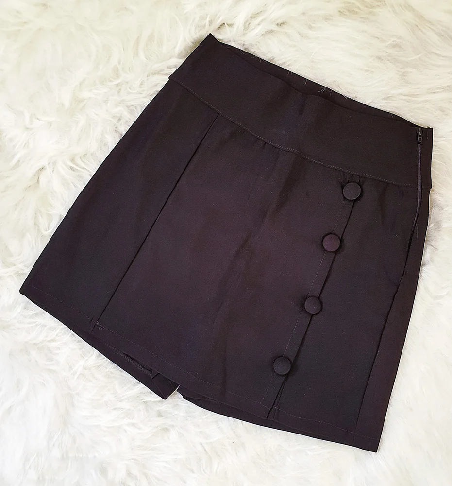 O Short Saia Alfaiataria Preto com botões é a peça perfeita para quem busca conforto e estilo no dia a dia. Confeccionado em Bengaline, um tecido resistente e com alta elasticidade, que se adapta ao corpo.